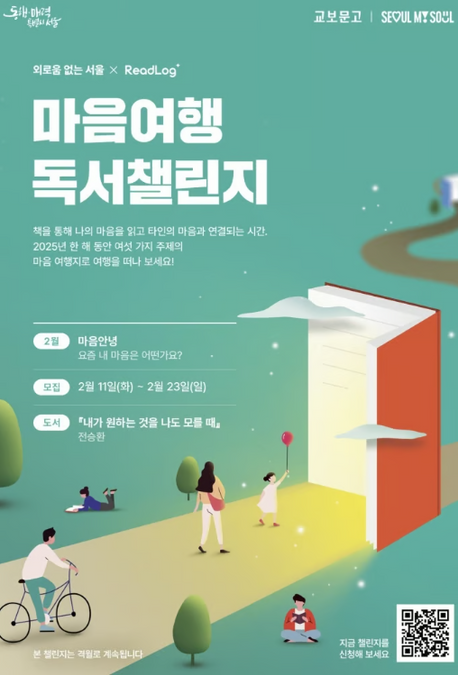 책은 혼자 읽어도 좋지만 사람들과 같이 읽고 생각을 나누면 내용에 대한 이해와 감상이 깊어지는 느낌이 듭니다. 우리 ESG 루키 2기에도 함께 책을 읽는 팀 '얼쑤!'가 있죠. 서울시와 교보문고의 '마음여행 독서챌린지'에 참여하면 비대면으로, 원하는 시간에 책을 읽고 사람들과 소통할 수 있다고 합니다. 챌린지 방법은 선정된 도서를 2주 안에 읽고 인상 깊은 글귀를 '리드로그' 앱에 기록하는 것이에요. 앱에서 다른 참여자의 기록을 보고 서로 이야기도 나눌 수 있대요. 올해는 격월로 총 6회가 진행되고, 1회차 선정 도서는 전승환